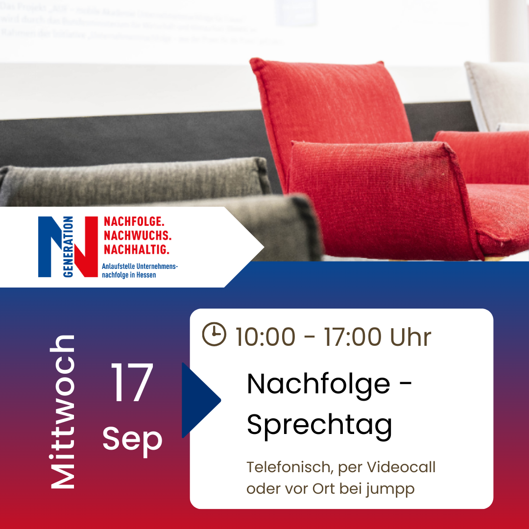 Infos und kostenfreie Anmeldung bis 12.09.2025 unter: www.jumpp.de/sprechtag-unternehmensnachfolge