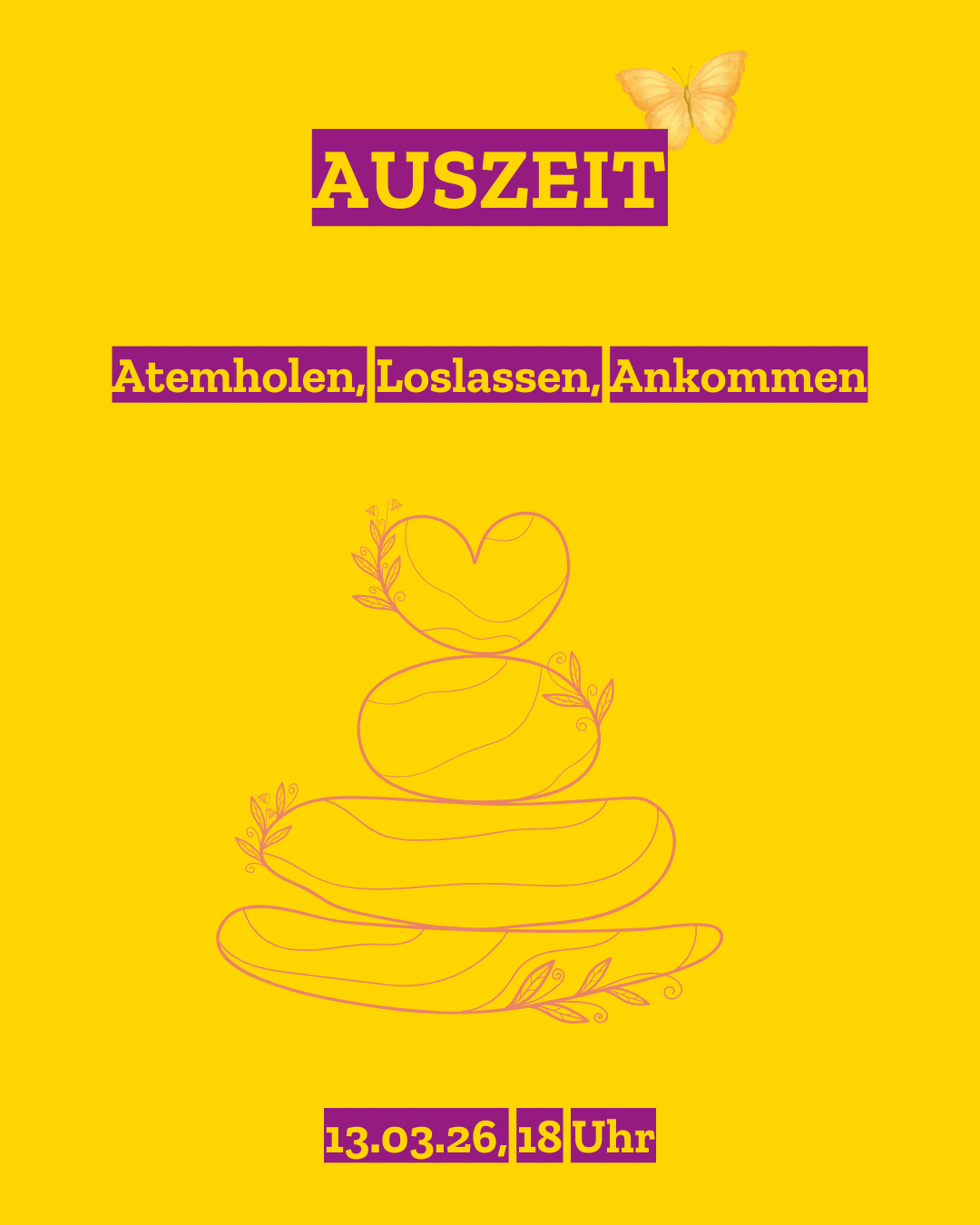 Rhythmen und wiederkehrende Strukturen sind wichtig für unser Leben. Daran wollen wir anknüpfen und an einer der Nahtstellen in unseren Alltagsrhythmen für eine Stunde zusammenkommen. Nach der Arbeit und vor dem Wochenende, im Übergang von Arbeitszeit zu Freizeit, von Tag zu Nacht, mitten im Rennen, Denken und Tun, wollen wir innehalten und Zeit finden für Körper, Geist und Seele.